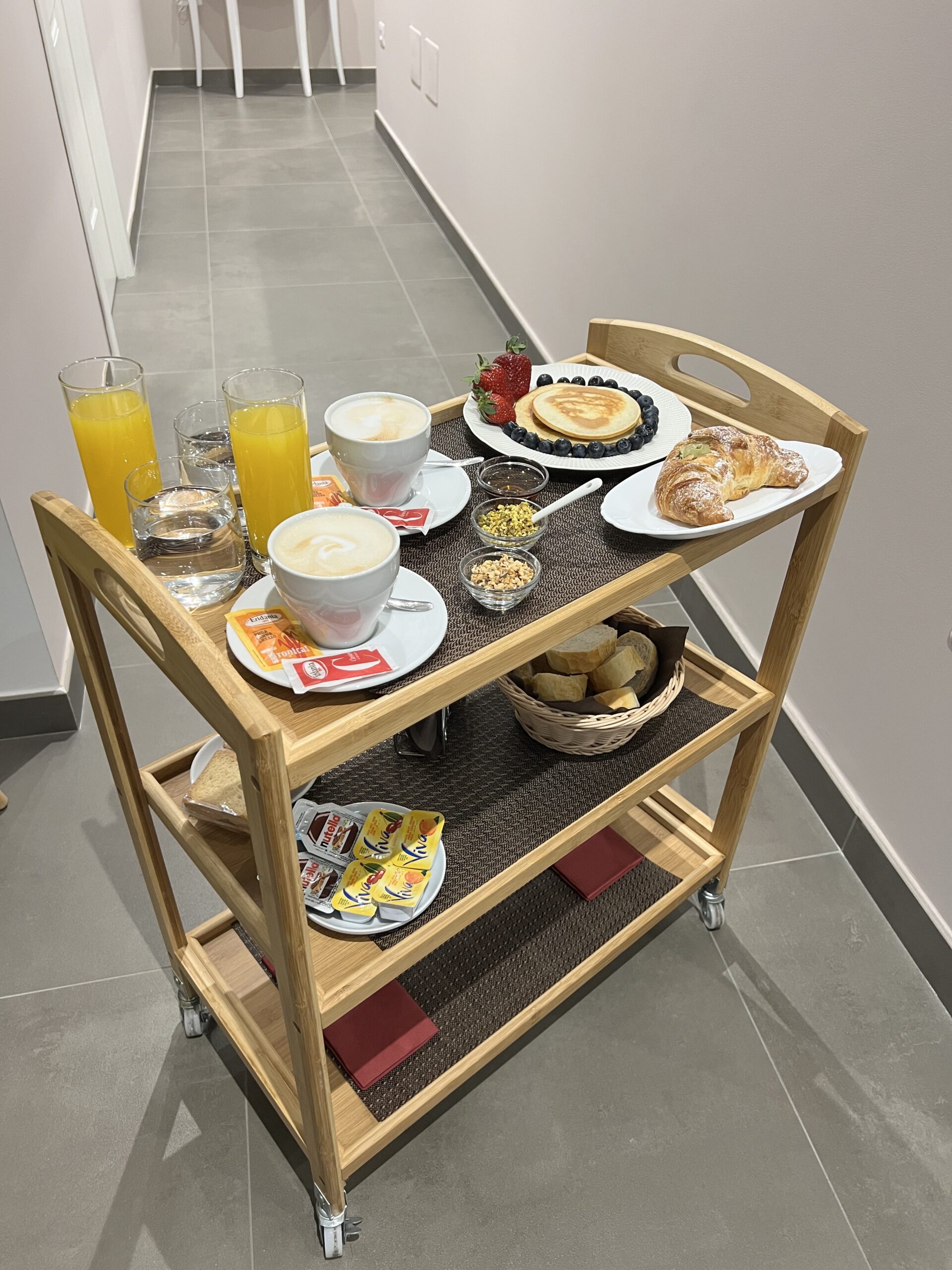 Per iniziare al meglio le vostre giornate, ogni mattina dalle ore 8:30, vi verrà servita direttamente in camera una sostanziosa colazione a scelta tra italiana o salata. Inoltre, saremo lieti di soddisfare eventuali richieste inerenti ad intolleranze alimentari (da comunicare prima del vostro arrivo) per offrirvi un servizio sempre più efficiente.